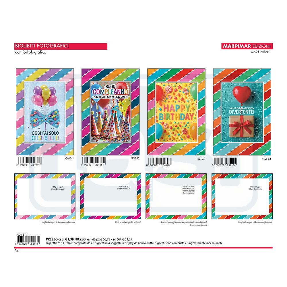 BIGLIETTI COMPLEANNO FIOL OLOGHRAFICO x 12 Pz. ART.AGVE11
