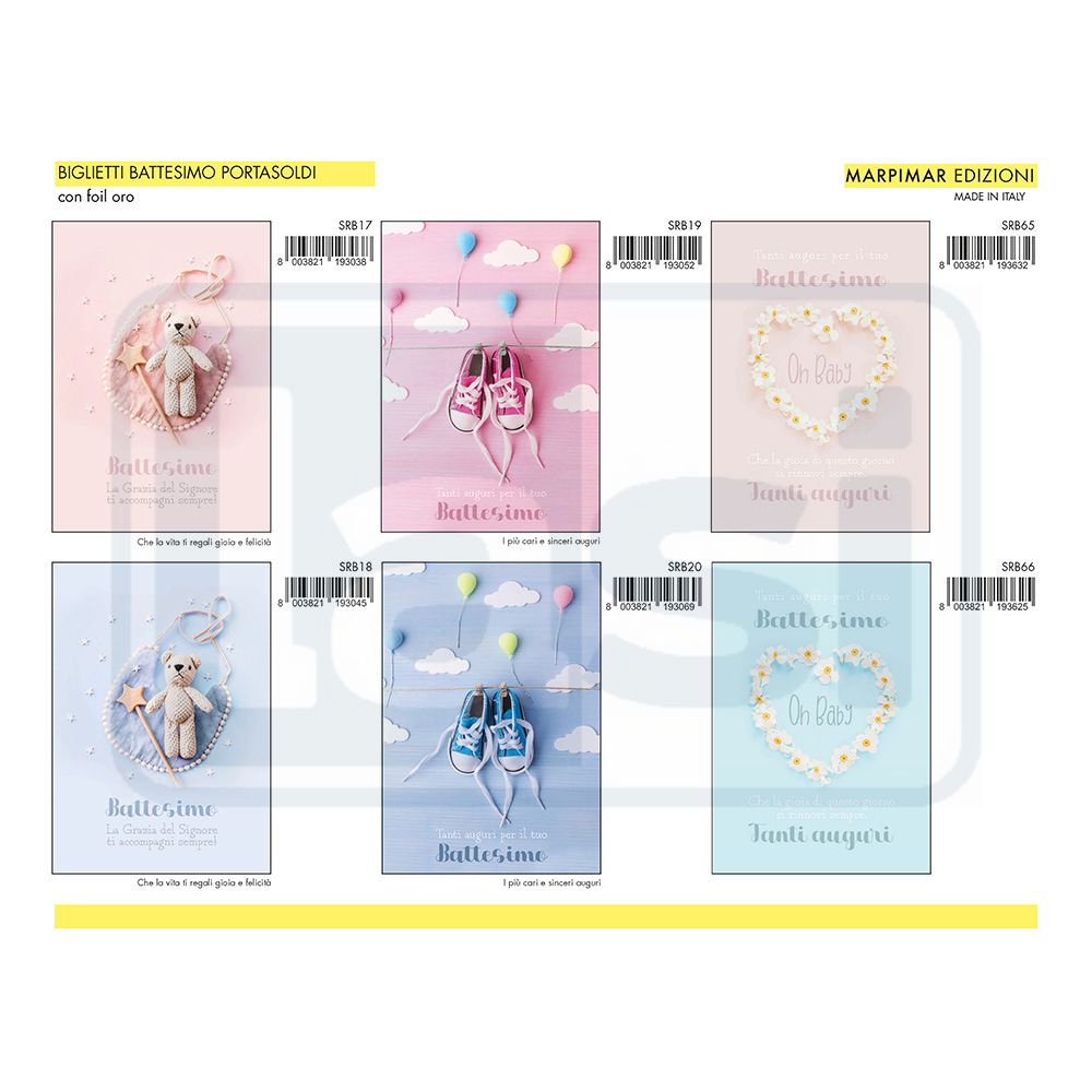 BIGLIETTI BATTESIMO PORTASOLDI x 12 Pz. ART.ASRB05
